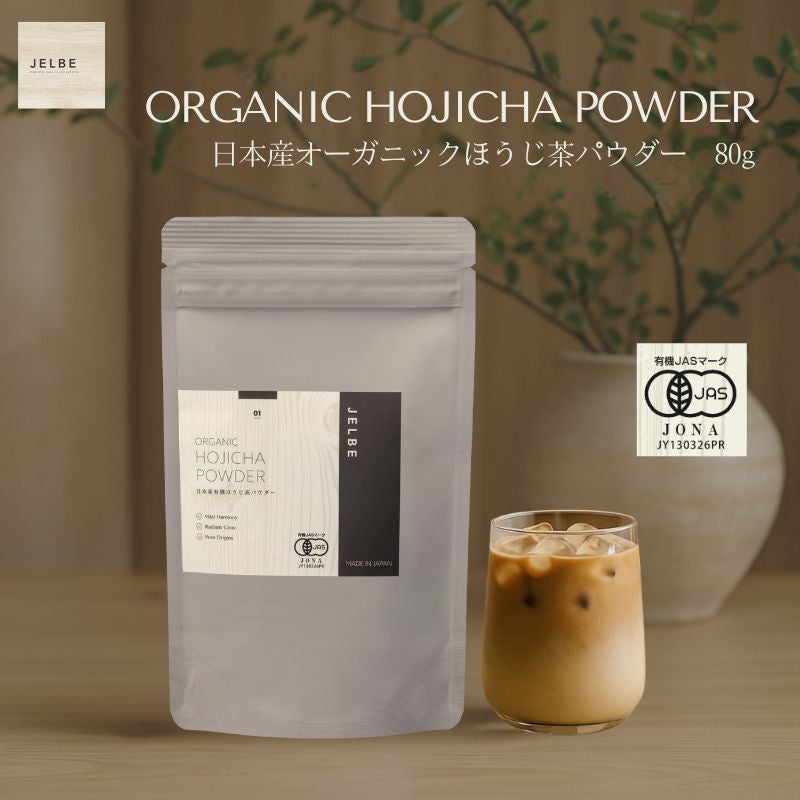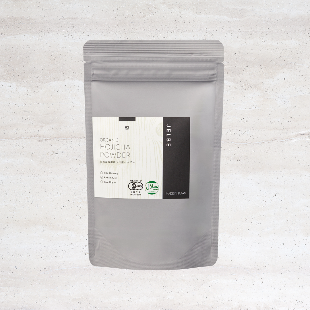 日本国内で有機栽培された茶葉のみを使用し、 JAS有機認証およびHALAL認証を取得した、プレミアムほうじ茶パウダー。香料・着色料・甘味料を一切加えないクリーンな処方で、焙煎による豊かな香ばしさと、カフェインが非常に少ないのが特徴です。